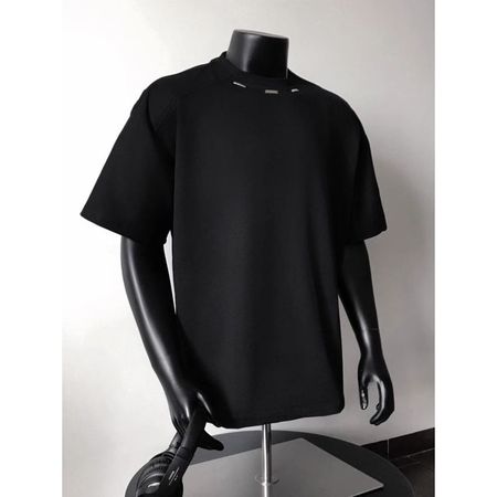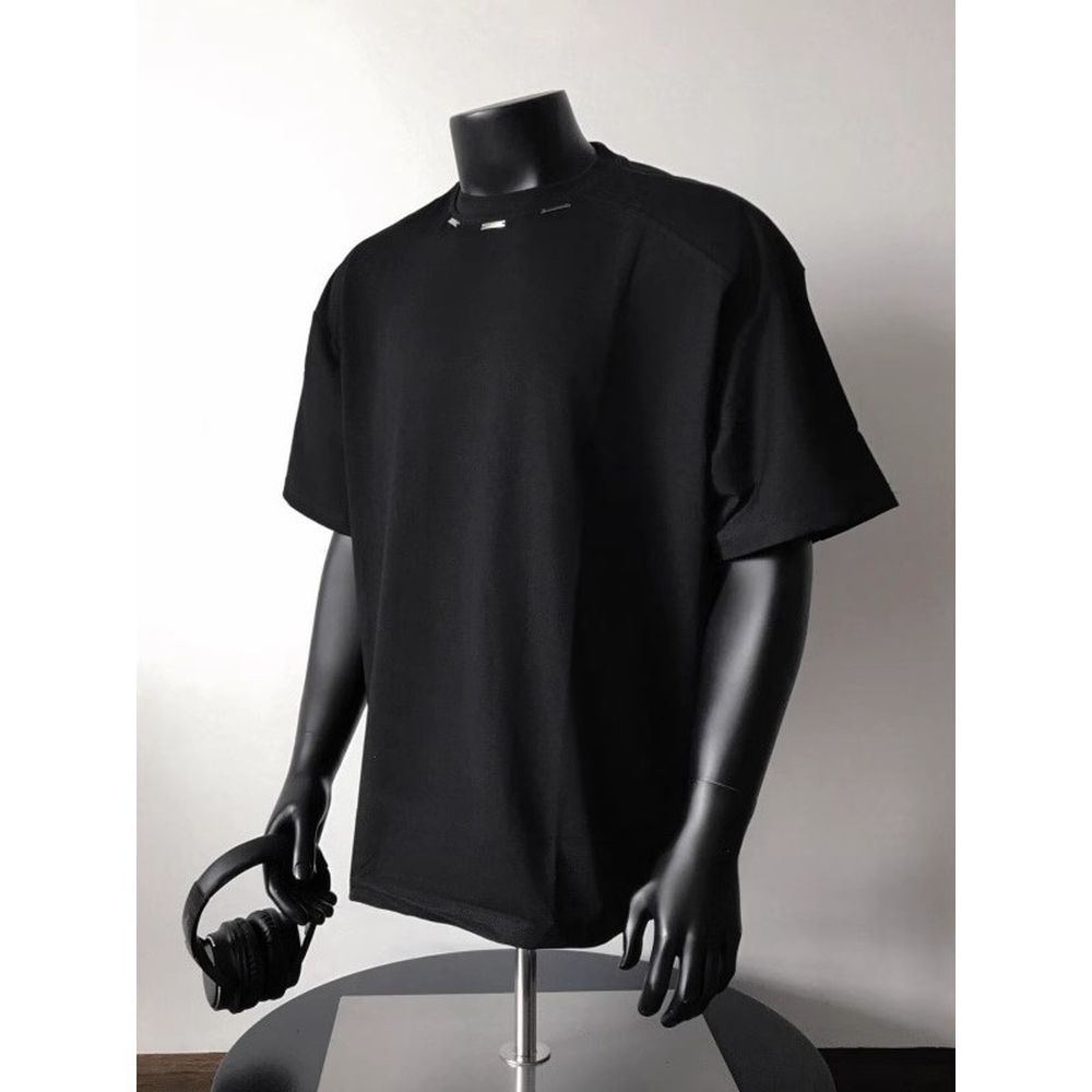New Men's T-Shirt Clothing Long-Sleeved Irregular Hem Decorative Button Solid Color Long-Sleeved Cotton