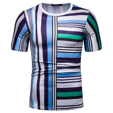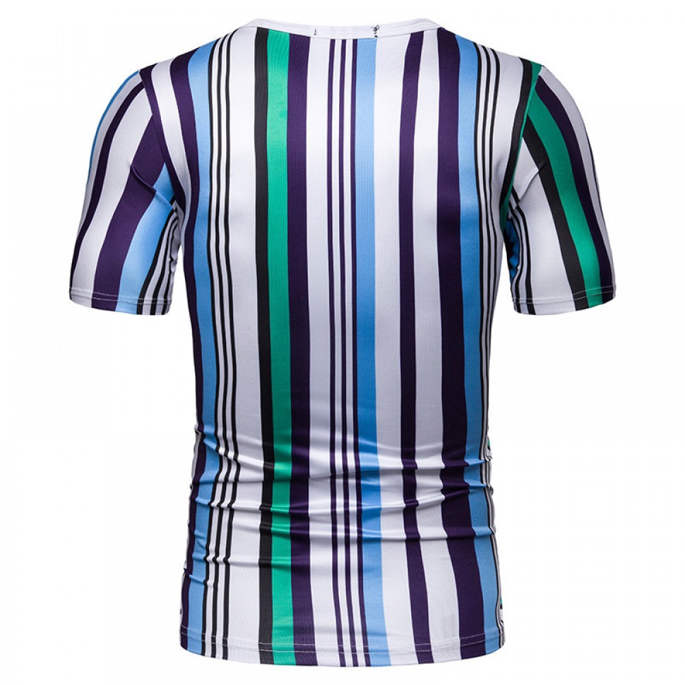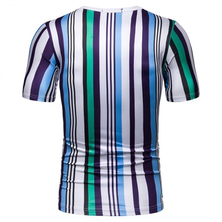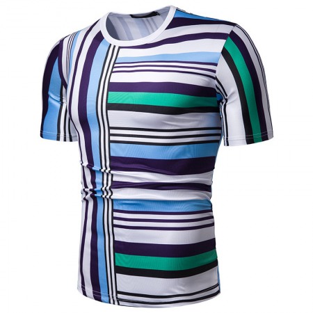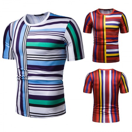 Summer Men's Short-Sleeved T-Shirt Men's Contrast Striped Slim Casual T-Shirts