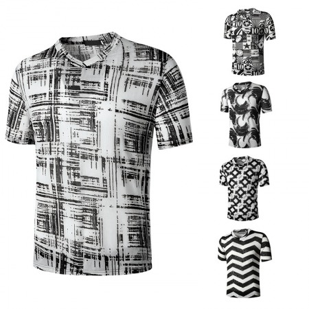 Summer Men's Short-Sleeved T-Shirt Men's Contrast Striped Slim Casual T-Shirts